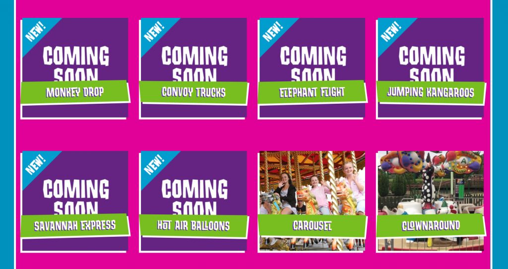 On their website they say they are opening a new safari zone which will include a sightseeing trip on board the Savannah Express and trip into the heights of Elephant Flight. Monkey drop towers and Convoy Trucks pretty much explain themselves as does the Jumping Kangaroos and Hot Air Balloons. All of these will be great additions to the park and hopefully encourage a day of family fun.