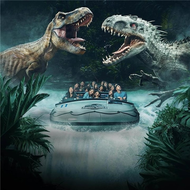 Keeping with the theme of very little theming to speak of, Flying Dinosaur complements Hollywood Dream beautifully in its unabashed roller-coaster-y-ness. In a cue later followed by VelociCoaster, Flying Dinosaur’s angle is that you’re on a roller coaster at Jurassic Park that’s themed to – you guessed it – a flying dinosaur. It’s simple, to-the-point, and doesn’t concern itself with anything more than being an exceptional flying coaster that soars over Jurassic Park. For something a little less on-the-nose, there’s always River Adventure (or JAWS for that matter – ride it while you still can).